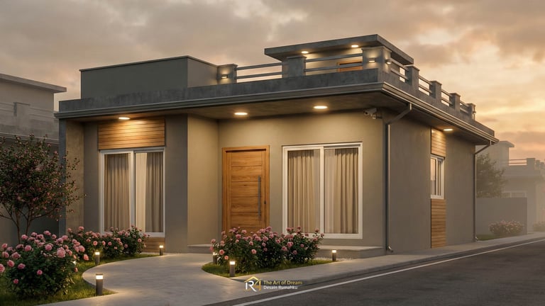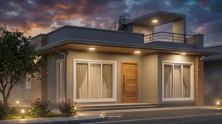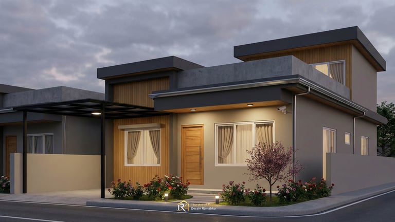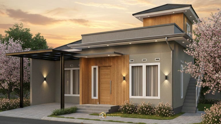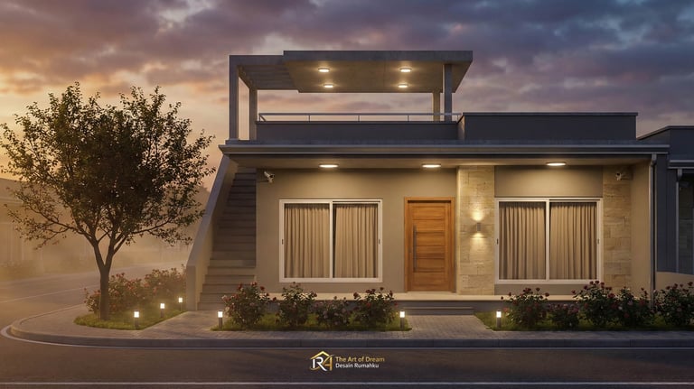 Tampilan depan atau fasad adalah wajah dari hunian Anda. Untuk konsep 7 Desain Rumah Minimalis Modern dengan Rooftop untuk Lahan 6x12, penggunaan material alam seperti batu andesit atau kayu ulin seringkali menjadi pilihan utama untuk memberikan kesan hangat namun kokoh. Dikombinasikan dengan cat dinding berwarna monokrom atau earth tone, Desain Rumah Minimalis Anda akan terlihat stand-out di lingkungan sekitar. Jangan lupa, pemilihan material harus tahan terhadap cuaca tropis Indonesia.