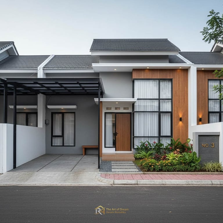 Temukan ide desain rumah minimalis modern dengan carport luas, kanopi polycarbonate, dan taman cantik. Hunian elegan nan fungsional untuk keluarga masa kini.